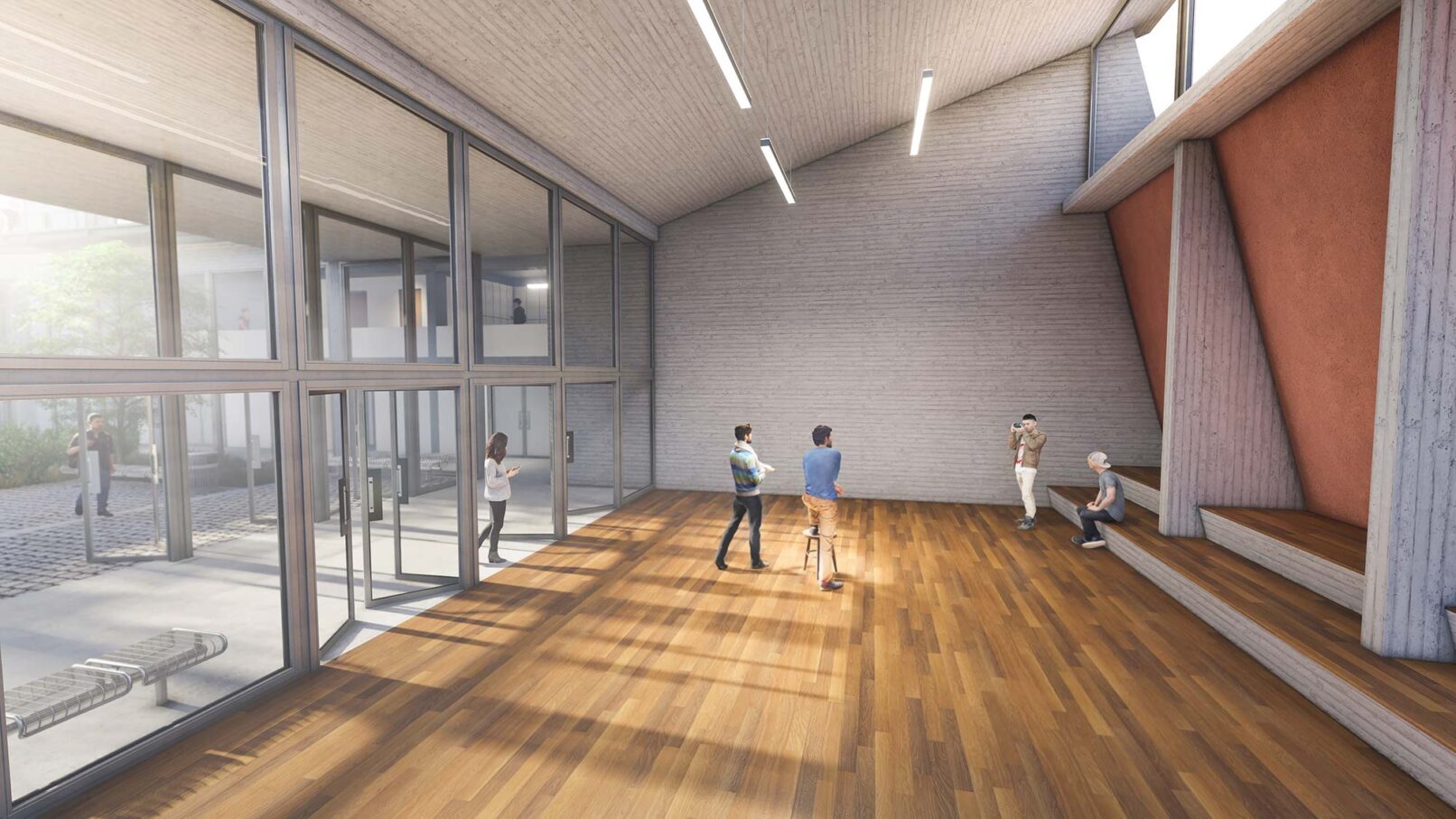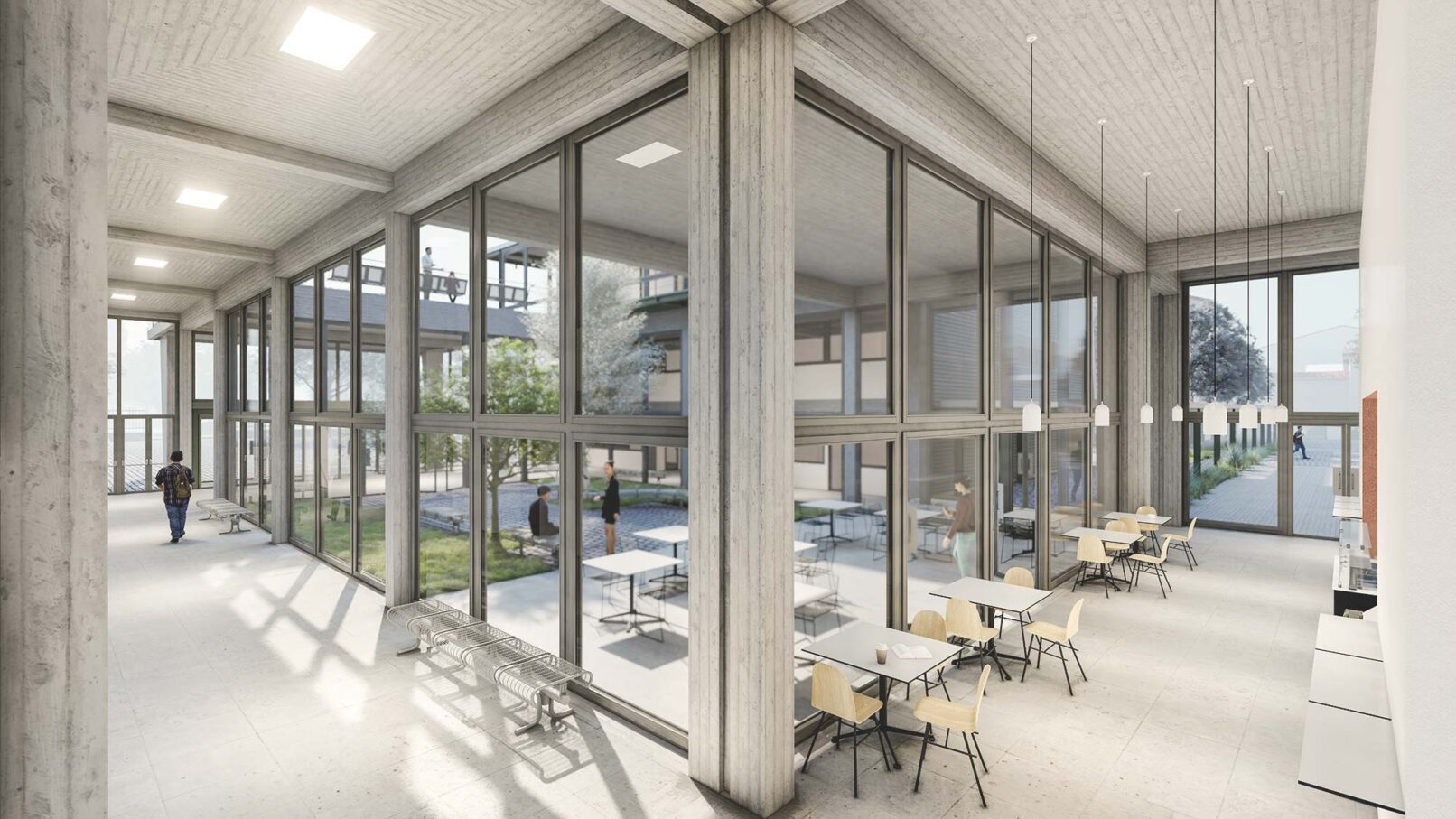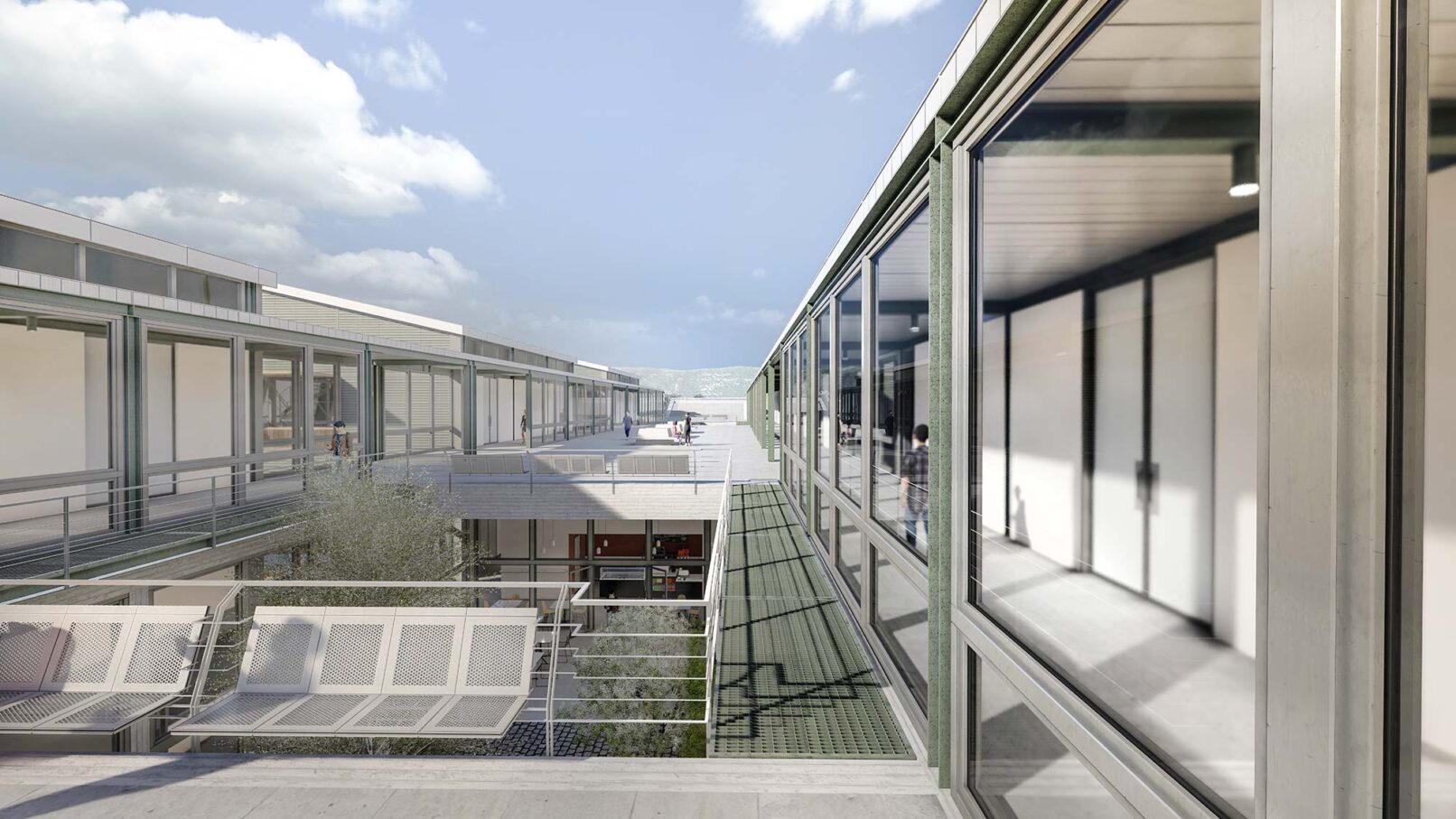Η ιδέα συγκρότησης του συνόλου από διακριτά εργαστήρια κατά μήκος ενός δημόσιου περάσματος, που περιλαμβάνει όλες τις κοινόχρηστες και εξωστρεφείς λειτουργίες της Σχολής παραπέμπει στα ποιοτικά χαρακτηριστικά μιας Αγοράς, ενός πολύβοου κέντρου συνάθροισης, που απευθύνεται στα μέλη της Πανεπιστημιακής Κοινότητας , αλλά και ευρύτερα στους κατοίκους της πόλης της Φλώρινας.