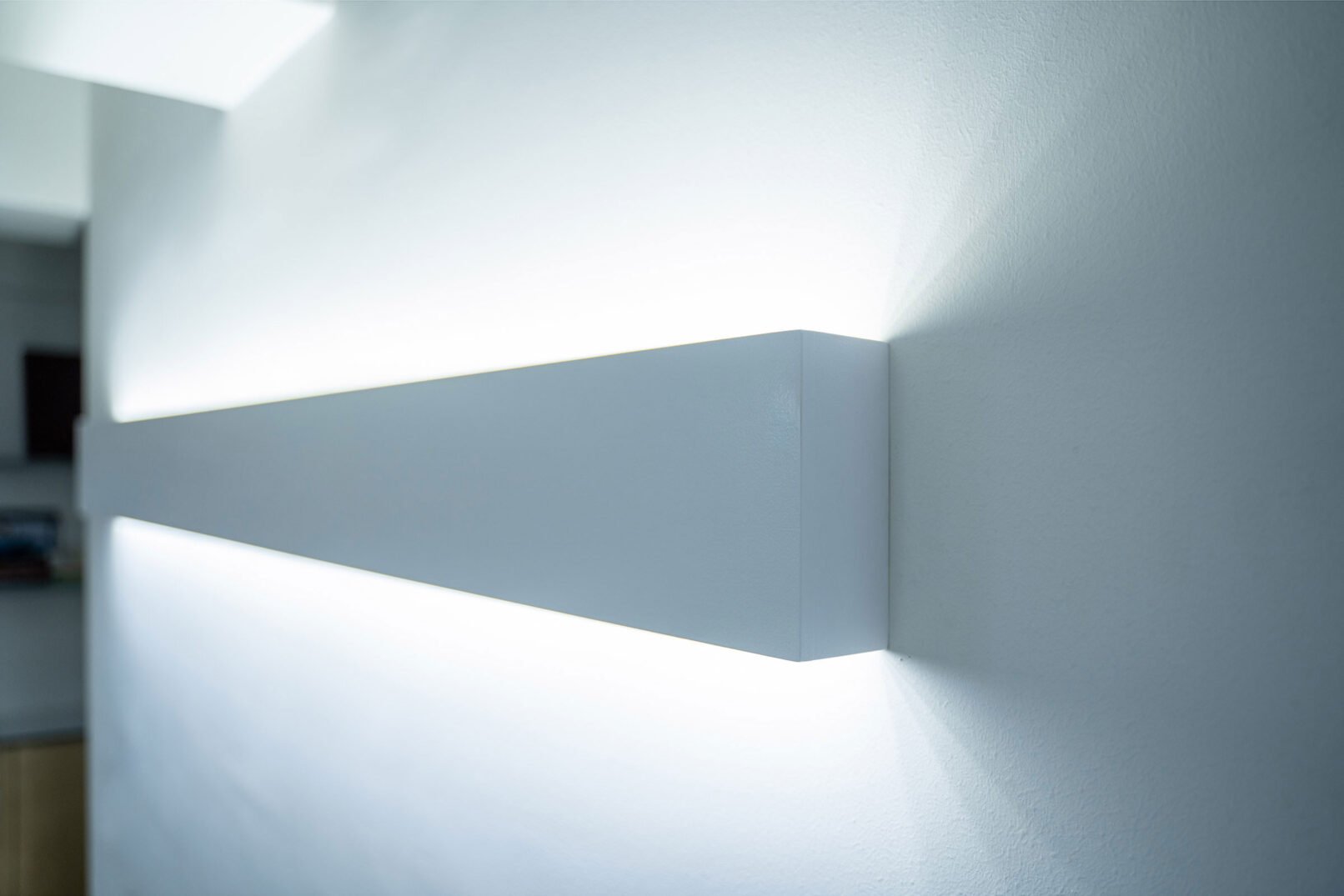 Linear Light is a wall piece designed for an office space. Τhe structure inside consists of a metal piece with low-voltage LED tapes running its length. The wooden π-shaped piece on the facade matches the color and texture of the wall to blend in seamlessly with its natural surrounding while its linear shape captures the movement’s direction and illuminates the corridor with ambient light.